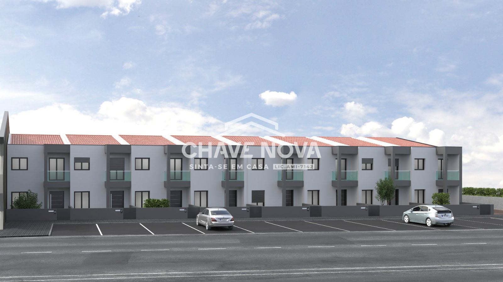 Moradias em banda tipo T2 composta por rés do chão, 1ºandar e garagem. Acabamentos modernos;