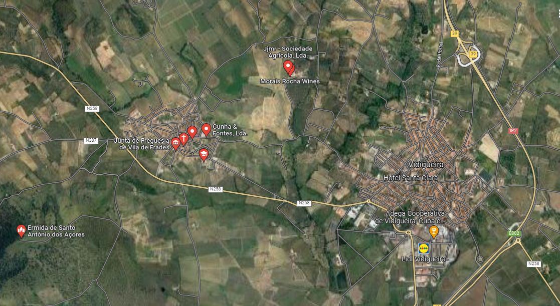 Fantástica quinta, situada em Vila de Frades, concelho de Vidigueira, com 44ha de área total, 21ha de vinha em produção, com uvas VQPRD, 7ha de olival (variedades Galega e Cobrançosa), 3ha de laranjal (variedades New Hall, Valencia Late e Laranja-Pera da Vidigueira), 5ha de floresta (sobreiros e azinheiras com colmeias) e 4ha de terreno livre. Na vertente do agroturismo, existe na propriedade, um hotel totalmente equipado e em funcionamento, com área total de 370m², zona de refeições no piso superior e 6 quartos duplos no piso térreo, todos com casa de banho, ar condicionado e acesso direto ao exterior, de onde pode contemplar a vista sob a vinha, este hotel foi pensado e dimensionado, com todas as infraestruturas necessárias, para a construção de mais 6 quartos, perfazendo um total de 12 quartos. Dentro da herdade, existe uma casa de habitação com 370m² de área, totalmente mobilada e equipada, com aquecimento central, 4 quartos em suíte, sala de estar e jantar com lareira, cozinha, 1 casa de banho social e espaço exterior de lazer e refeições. A poucos metros da piscina comum, encontramos uma adega mista de 250m² com cozinha, casa de banho, 7 talhas de barro na zona tradicional, cuba de fermentação para 5000 litros de vinho, respetivo chiller e vários depósitos em inox/stell, na zona moderna. Conjuntamente com a herdade, são vendidos alguns equipamentos agrícolas e veículos, como um trator New Holland de 85 Cvs, atrelado com capacidade para transportar 5000 quilos, pulverizador rebocável de 2000 litros, destroçador de vides, adubador de fundo e dispersão, capinadeira, bem como vários equipamentos diversos.