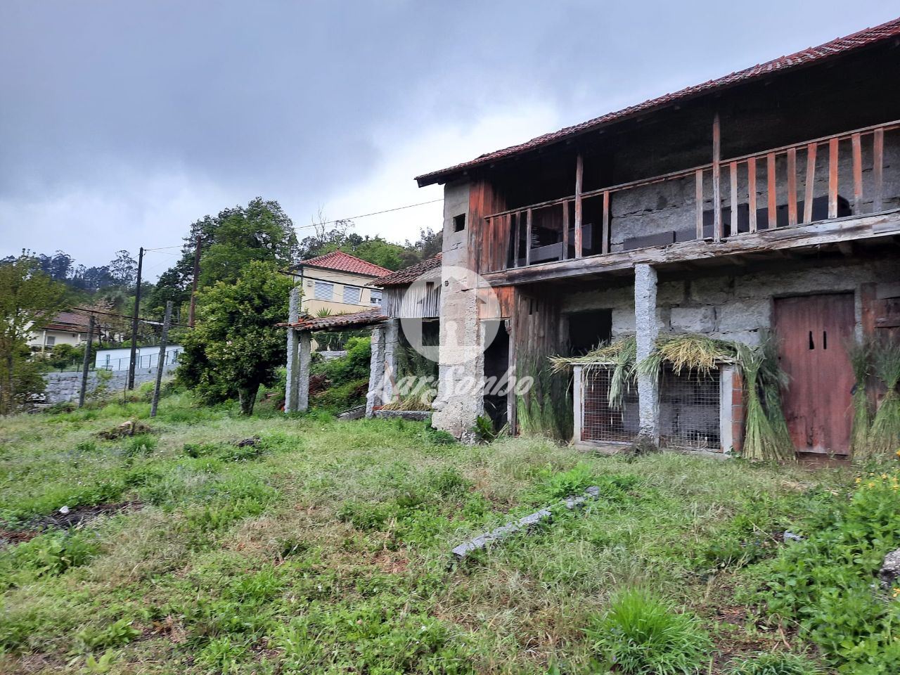 Moradia e anexo para restauro com 100 m2 de implantação e anexo com cerca de 80 m2, \nestão inseridos num lote de terreno de 5195 m2 e implantadas na extremidade do terreno, \nque lhe confere um amplo espaço de lazer e terreno para cultivo.\nA propriedade possui água de mina e poço, juntamente com um tanque para serventia da moradia e para o terreno.\nBeneficia de uma exposição solar muito boa, possui também uma envolvência campestre e verdejante , onde reina a tranquilidade.\nPossui vistas desafogadas, bons acessos, transportes públicos nas imediações e encontra-se a cerca de 4km do centro da cidade.