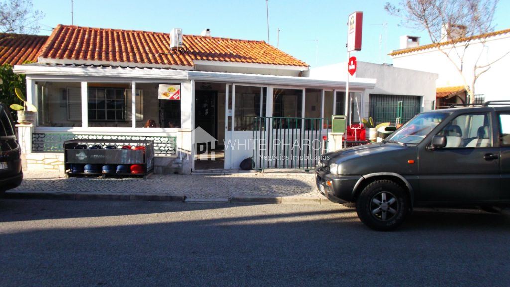 Café equipado com balcão frigorífico, copa equipada com mesas, fogão, forno, exaustores, armários, mesas de café e esplanada. Além da área coberta de 64,50 m2, tem ainda esplanada de 35,40 m2 e atrás um anexo de 110,00 m2..
