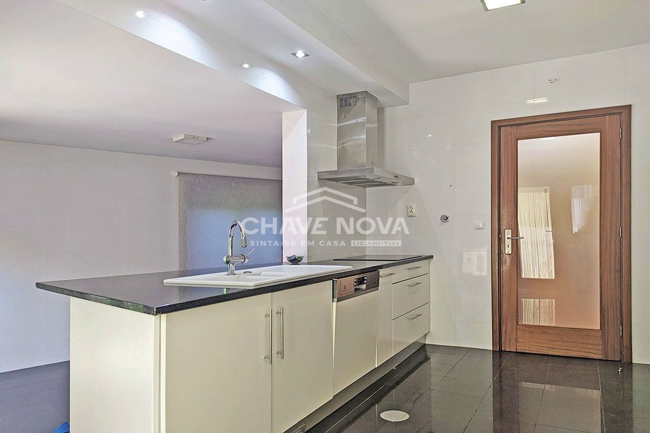 Moradia geminada T4+1 em Santa Maria da Feira Constituída por três pisos, com exposição solar norte, nascente e sul. Inserida num lote de 347 m2. Constituída por: Rés-do-chão: - Hall de entrada; - Cozinha equipada; - Despensa; - WC de serviço; 1º Piso: - Suíte com closet e WC com banheira e base de duche; - 2 quartos com roupeiros embutidos; - WC de apoio com base de duche; - 1 escritório; Cave: - Garagem para 2 carros; - Lavandaria; - WC com base de duche; - Salão com acesso ao exterior. Outras características: - Aproveitamento do sótão, com uma sala/quarto com WC; - Piso em Afizélia; - Trituradora de resíduos na banca da cozinha; - Aquecimento central alimentado por caldeira a pellets; - Painéis solares para aquecimento de águas e termo acumulador; - Aspiração central; - Ar condicionado na suíte; - Caixilharia de vidro duplo; -Alarme; - Portões automáticos; No logradouro da moradia, temos uma piscina amovível, churrasqueira e jardim infantil com acesso à cave por escadaria. Localizada a 2 minutos do centro de Santa Maria da Feira, em zona habitacional de moradias. Com acesso às principais vias rodoviárias, A1 e A29. Temos perto zona comercial, serviços vários, farmácia, bancos e zonas de lazer. Tratamos de toda o processo de financiamento e acompanhamento até ao ato da escritura. Para todas as informações que desejar, estamos ao seu inteiro dispor. Agende a sua visita, Chave Nova Feira
