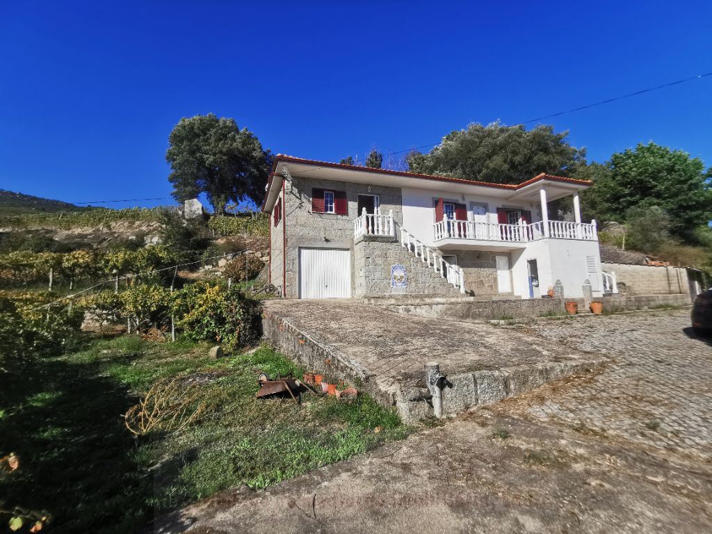 Moradia Isolada T3, terreno com 4000m2. Lareira c/ recuperador de calor, cozinha equipada. Vistas desafogadas para montanha, a 10 minutos de Mesão Frio. Ótima exposição solar.