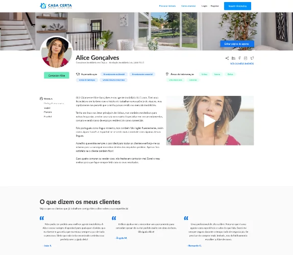 Versão premium - Com mais funcionalidades como video de apresentação e mais vantagens na sua promoção como agente junto dos potenciais clientes, sejam proprietários ou compradores.
